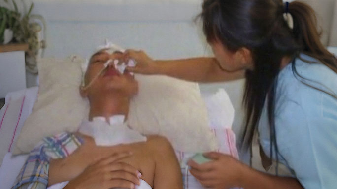 Мистер Чжан Лей, 26 лет, китайский, полицейский. Он страдал от очень тяжелой черепнобральной травмы после автомобильной аварии в 2005 году. После получения пары нейрохирурдеров и дренажа спинномозговой жидкости пациент возродился. Во время опухшего головы уменьшается, правая боковая мозг исчез, так как пораженная ткань мозга давили в течение очень длительного периода, связанная функция мозга является аномальной, так что пораженная ткань мозга - некроз, а затем метаболизируется.